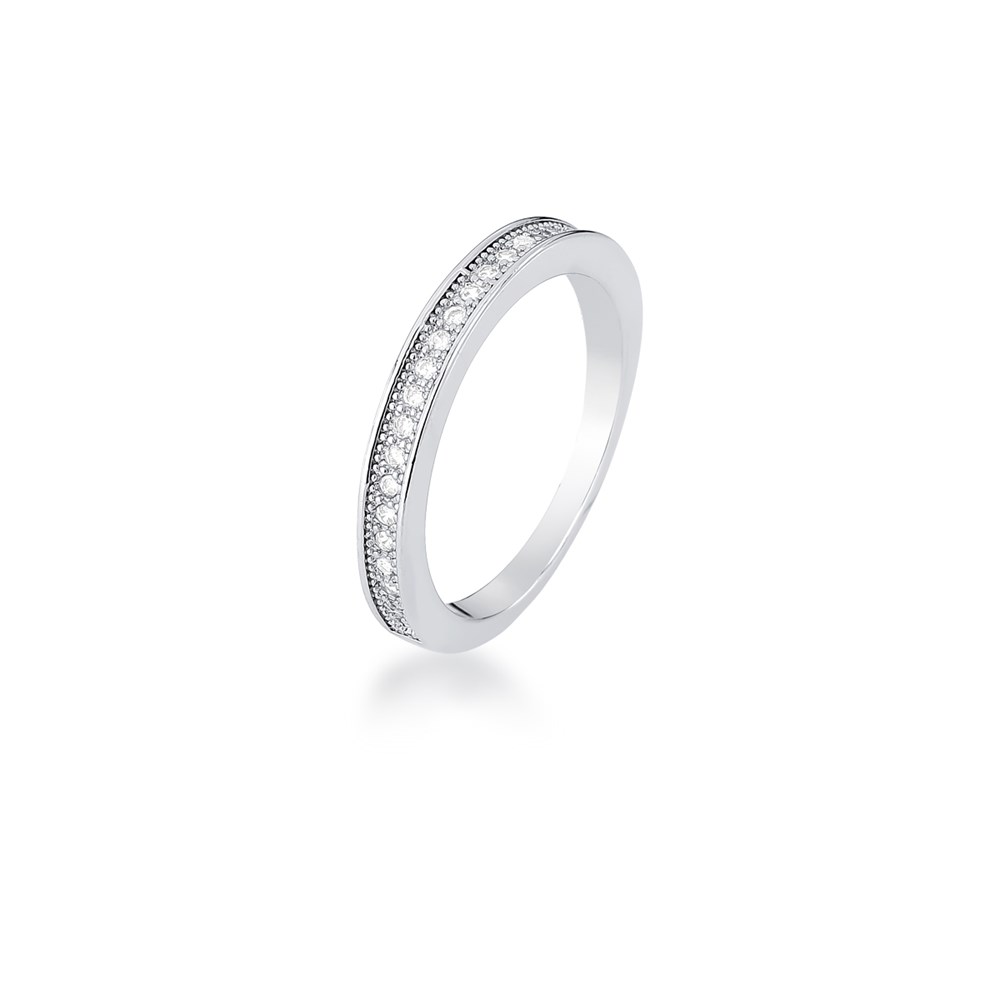 ANEL APARADOR ZIRCONIA FRENTE 1 LINHA 3MM BAN. A RODIO /INCOLOR /TAM. 16