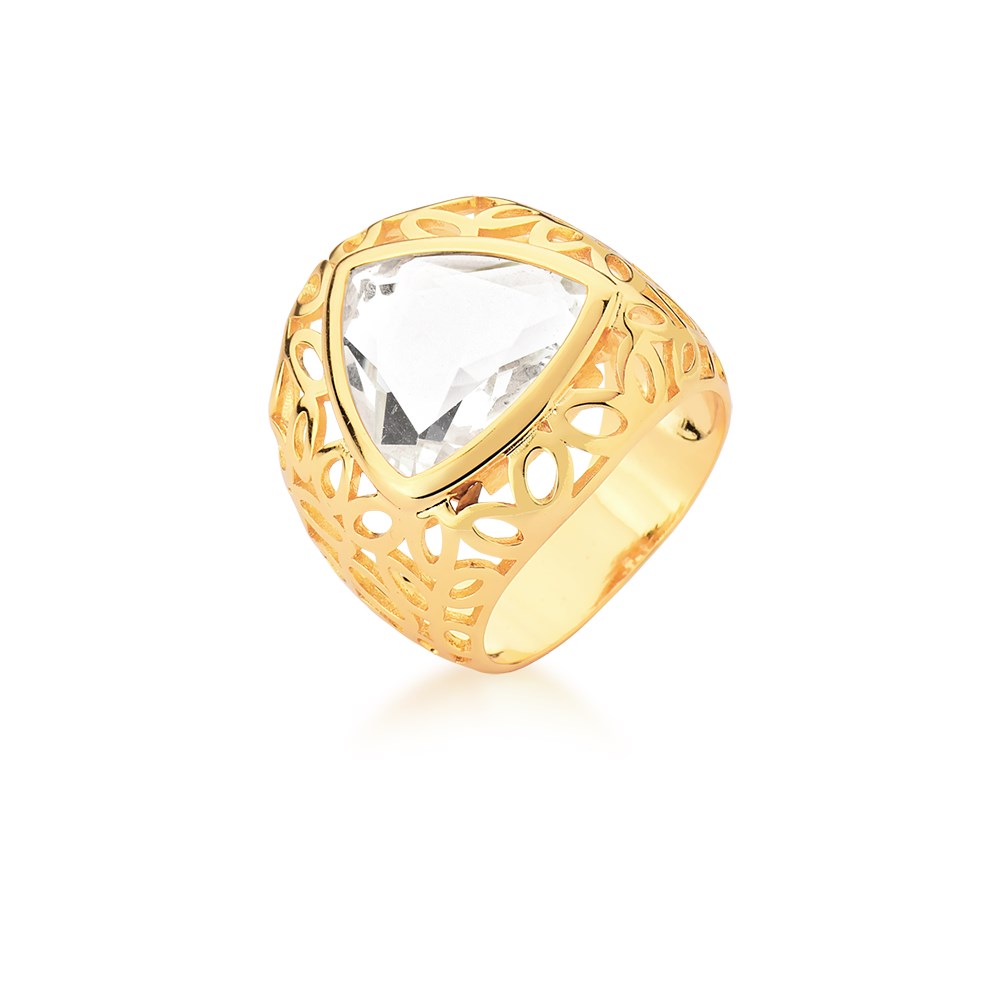 ANEL BAN DOURADO PEDRA BRANCA TRIANGULAR VAZADO CAT