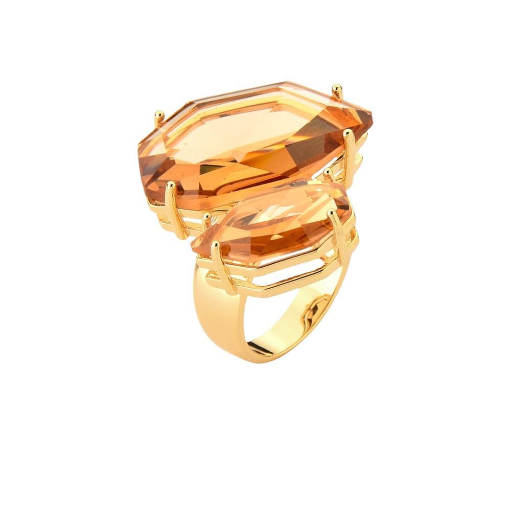 ANEL BAN. DOURADO PEDRA MORGANITA FACETADA 2 GOTA