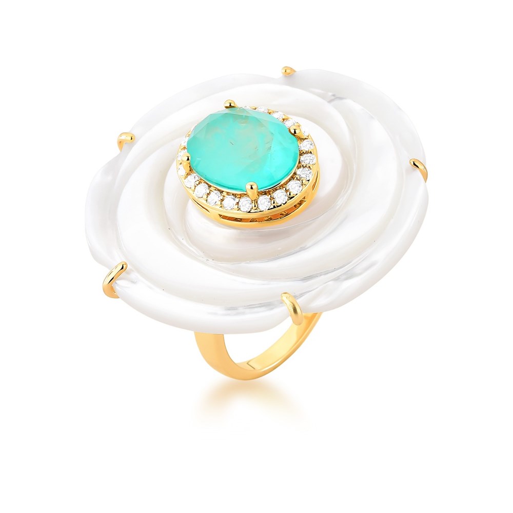 ANEL GRANDE PEDRA + ZIRCONIA FUSION OVAL MADREPEROLA LATERAL VAZADO