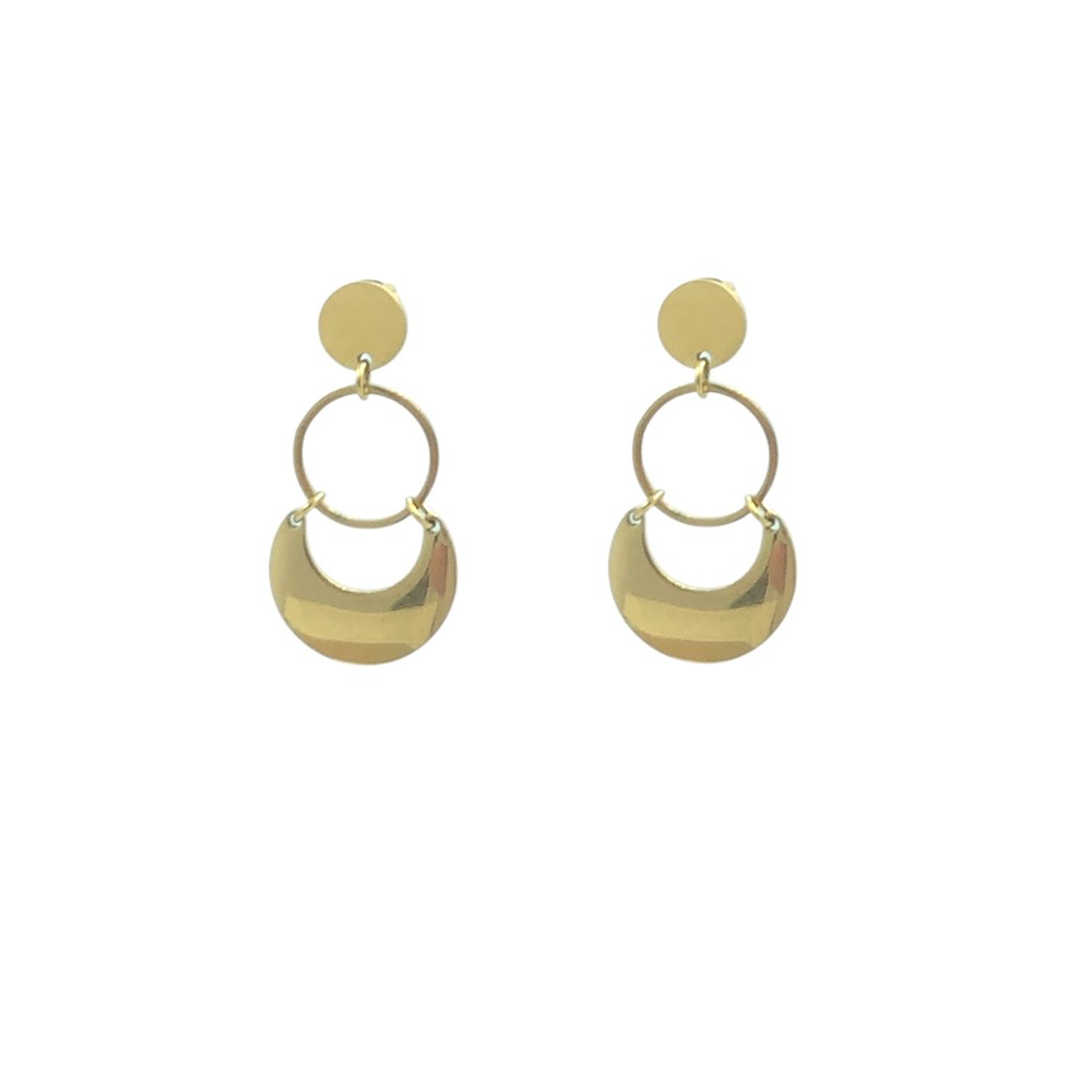 Brinco em Aço Banho Dourado Circulos Lisos e Vazados