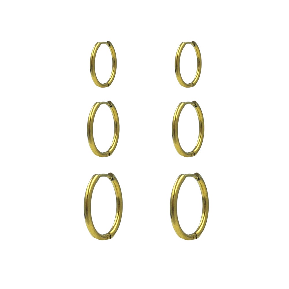 Brinco em Aço Banho Dourado Trio de Argolinhas PMG
