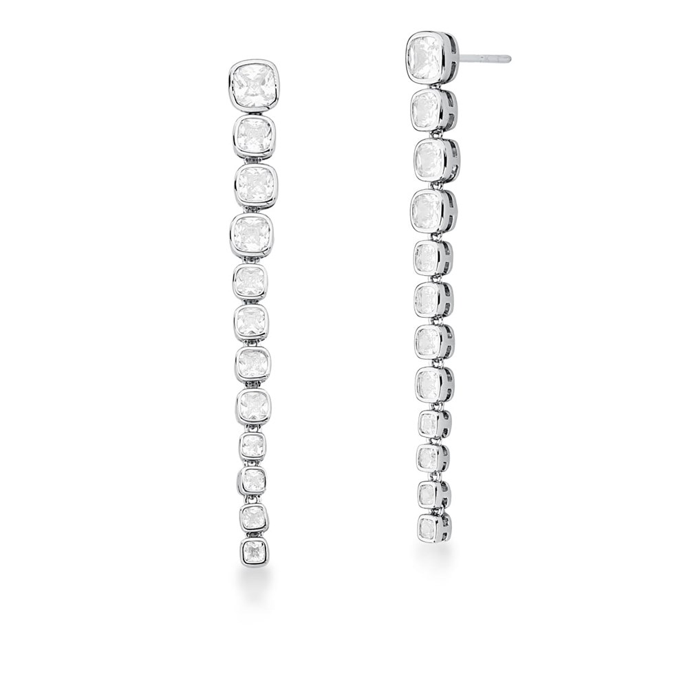 Brinco em Rodio 12 Pedras Pendulo Quadrado