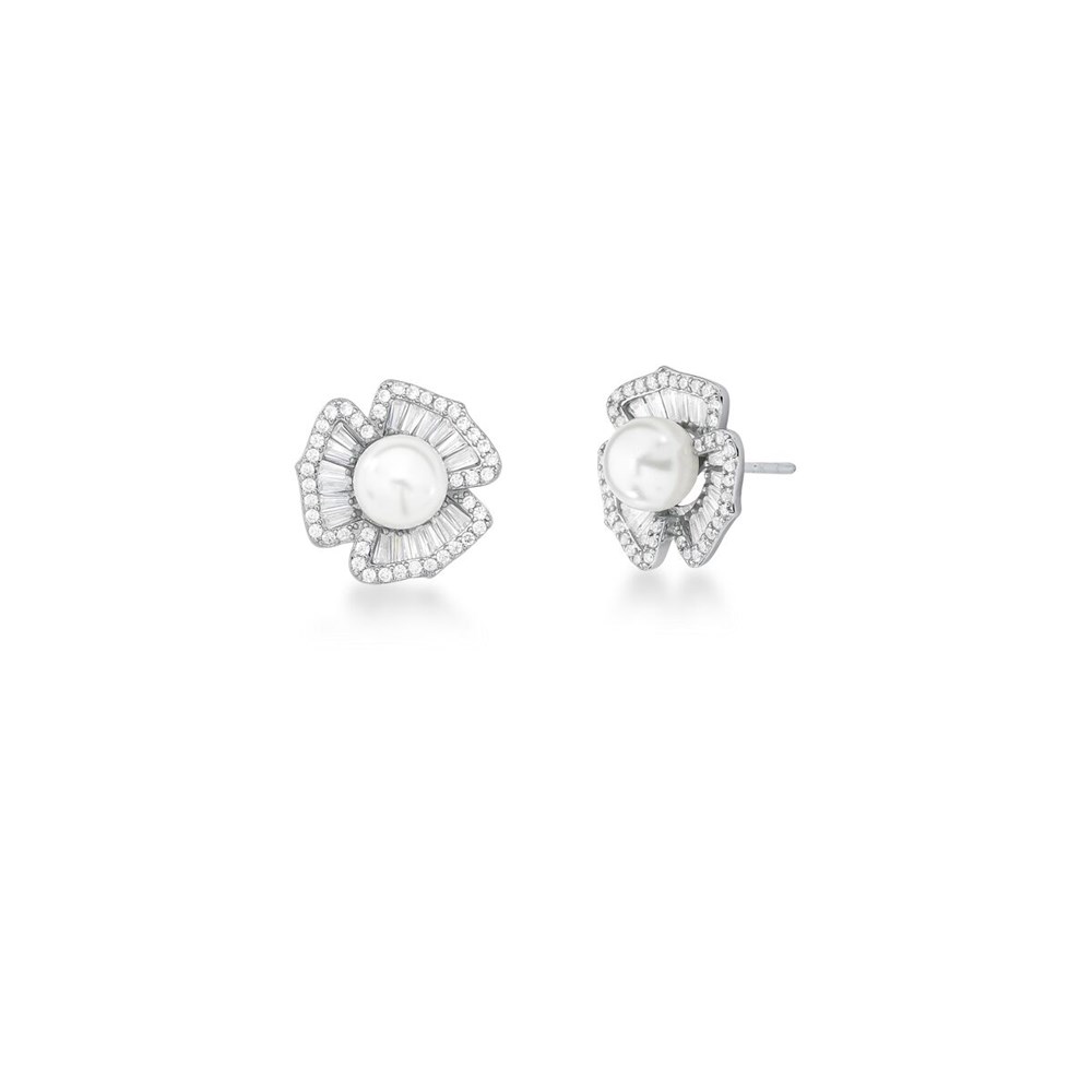 Brinco em Rodio Flor Cravejada com Perola
