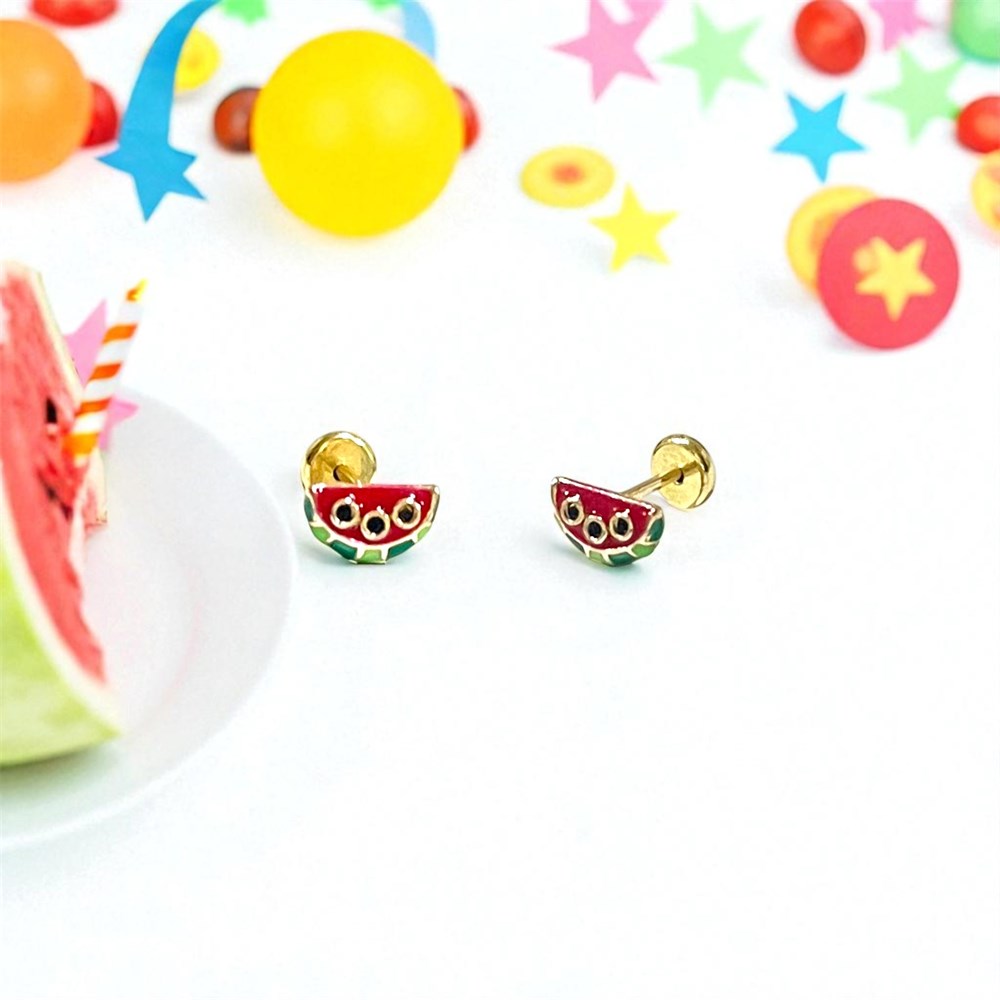Um toque divertido e cheio de cor para as pequenas que amam acessórios delicados e alegres! O Brinco Infantil Melancia é uma peça encantadora, folheada a ouro 18k, com acabamento esmaltado colorido que traz todo o charme da fruta mais querida do verão.