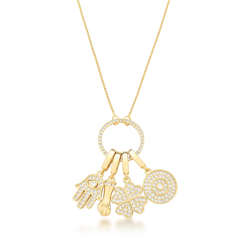 COLAR C/ PINGENTE C/ FECHO ZIRCONIA MAO FIGA TREVO OLHO REDONDO VAZADO