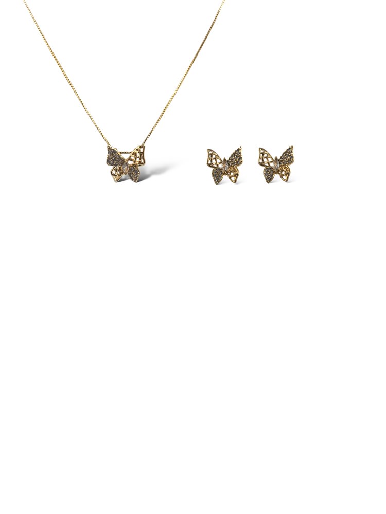 Conjunto Folheado 18k Borboleta Vazada com Zirconia