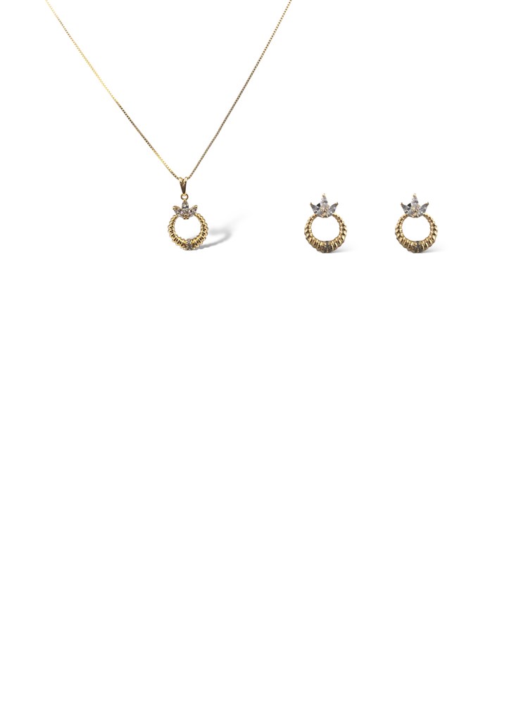 Conjunto Folheado 18k Circulo Trabalhado com Folhas em Zirconia