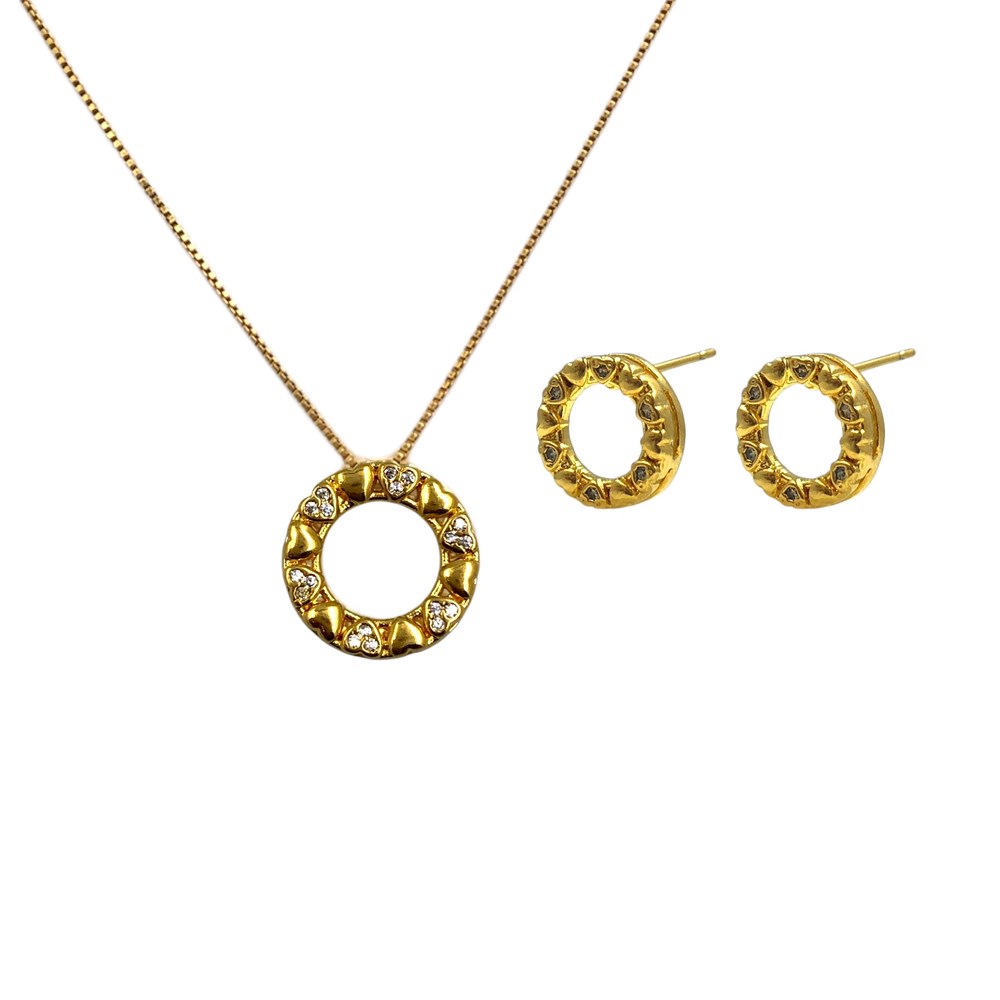 Conjunto Folheado 18k Circulo Vazado com Detalhe em Zirconia