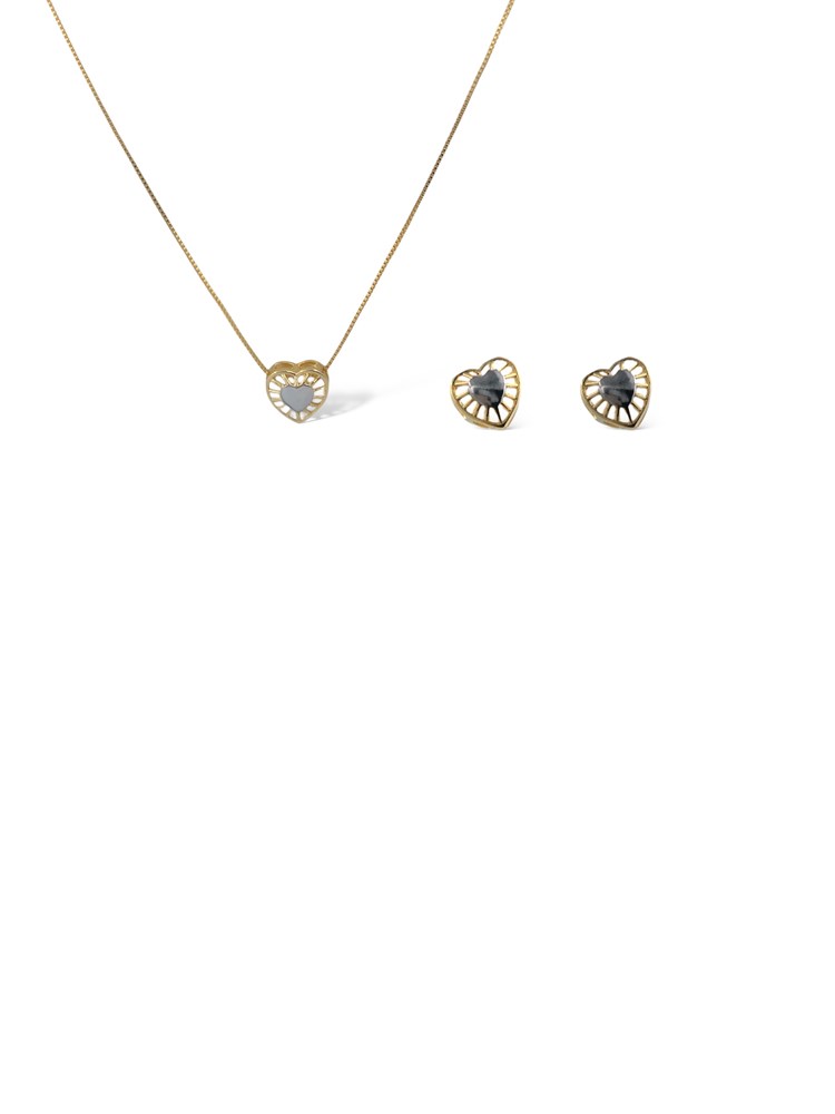 Conjunto Folheado 18k Coraçao Vazado com Detalhe em Rodhium