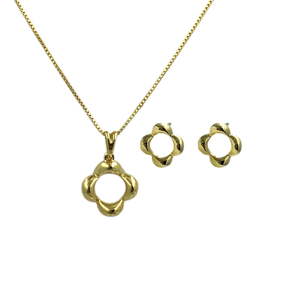 Conjunto Folheado 18k Flor Vazada