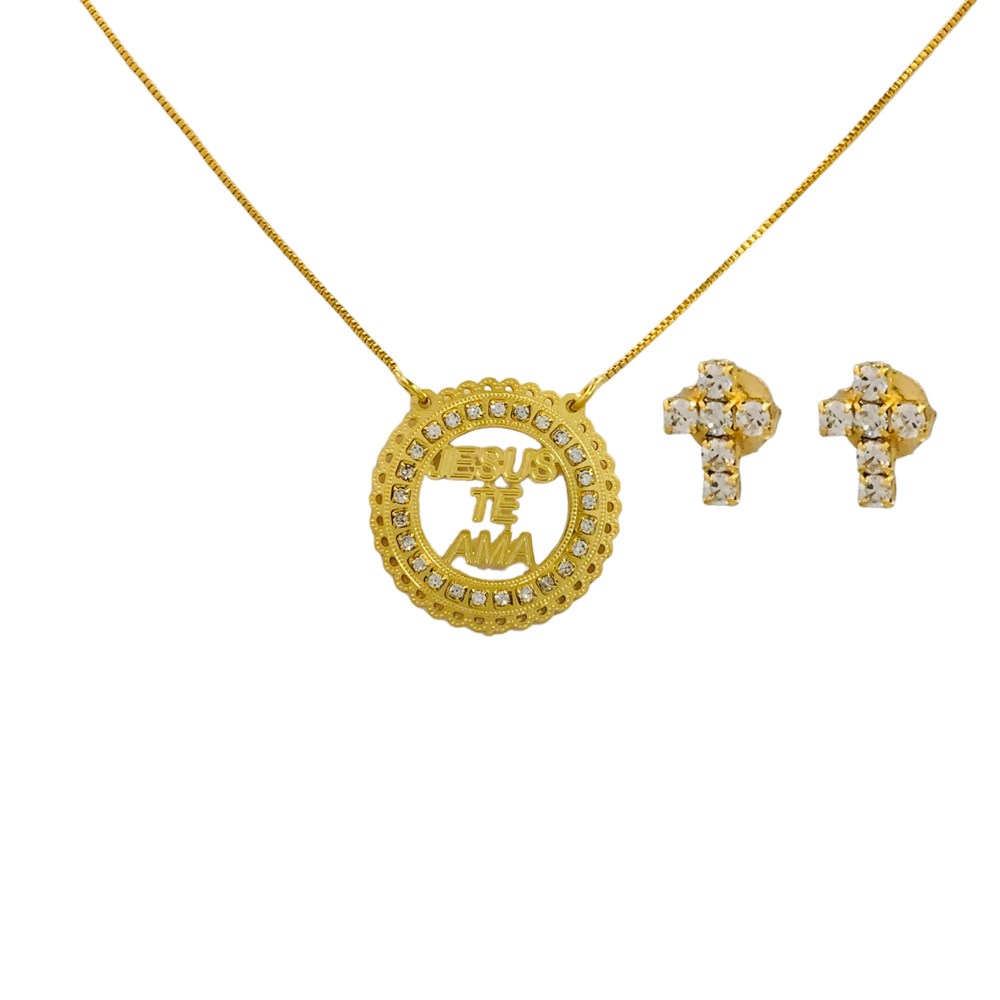 Conjunto Folheado 18k Jesus Te Ama