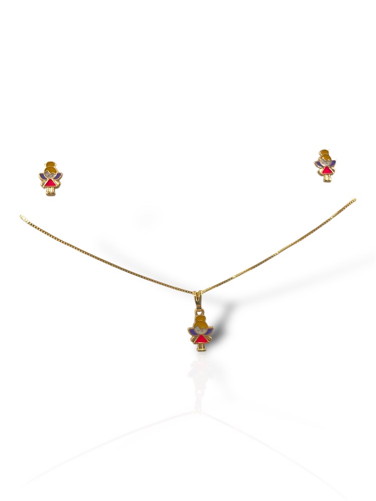Conjunto Folheado 18k Menina Esmaltada Colorida