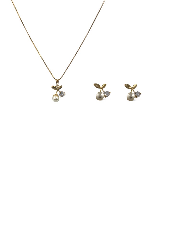 Conjunto Folheado 18k Perola com Solitario em Zirconia