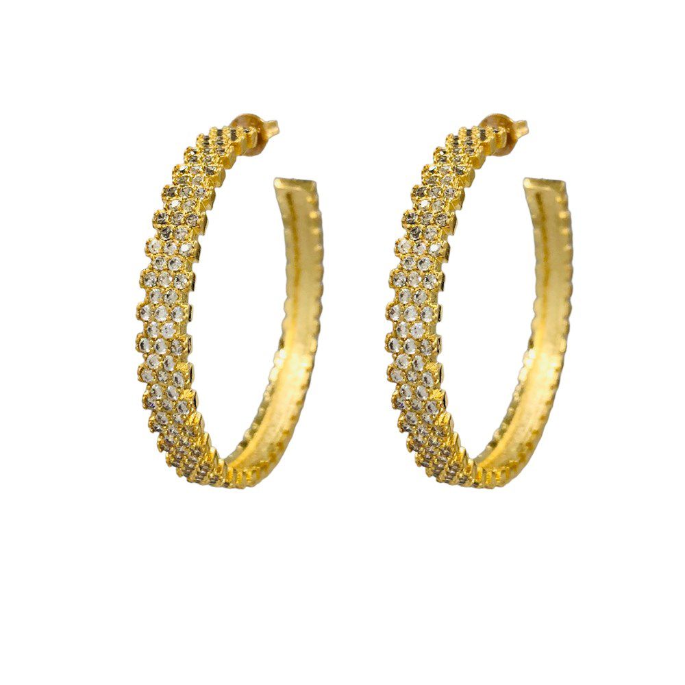 BRINCO FOLHEADO 18K ARO TRABALHADO COM ZIRCONIA FRONTAL