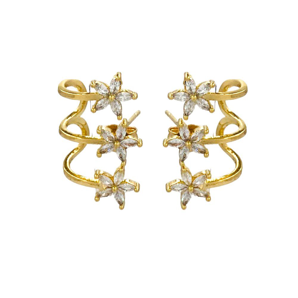 BRINCO FOLHEADO 18K C/ FLORES EM ZIRCONIA