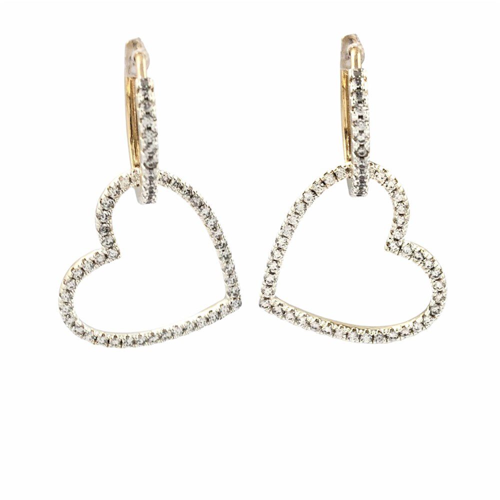 Brinco Folheado 18k com Zirconia Frontal e Coraçao Pendurado