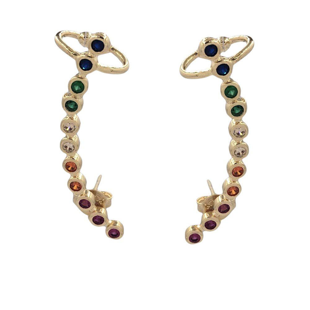 Brinco Folheado 18K Ear Cuff com Zirconia Colorida