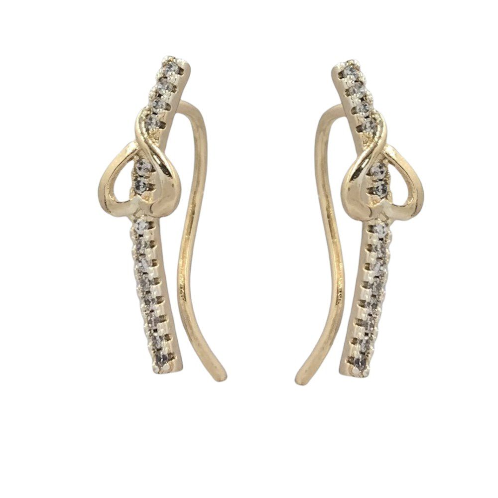 Brinco Folheado 18k Filete em Zirconia e Coraçao Vazado