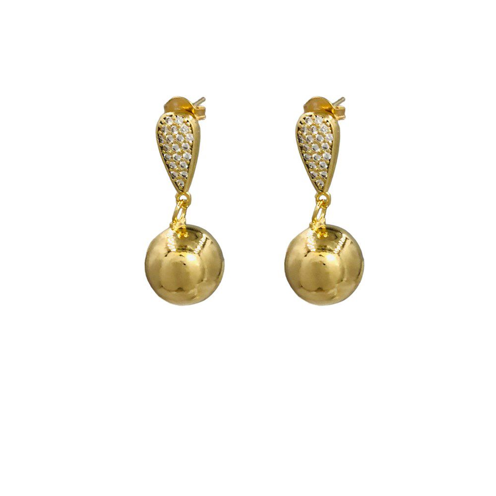 BRINCO FOLHEADO 18K GOTA EM ZIRCONIA C/ BOLA LISA