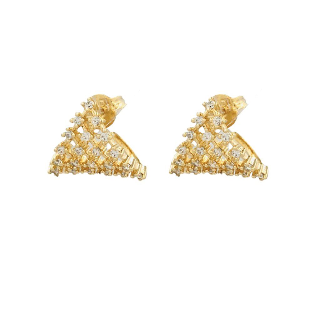 Brinco Folheado 18K Triangulo Vazado com Detalhe em Zirconia