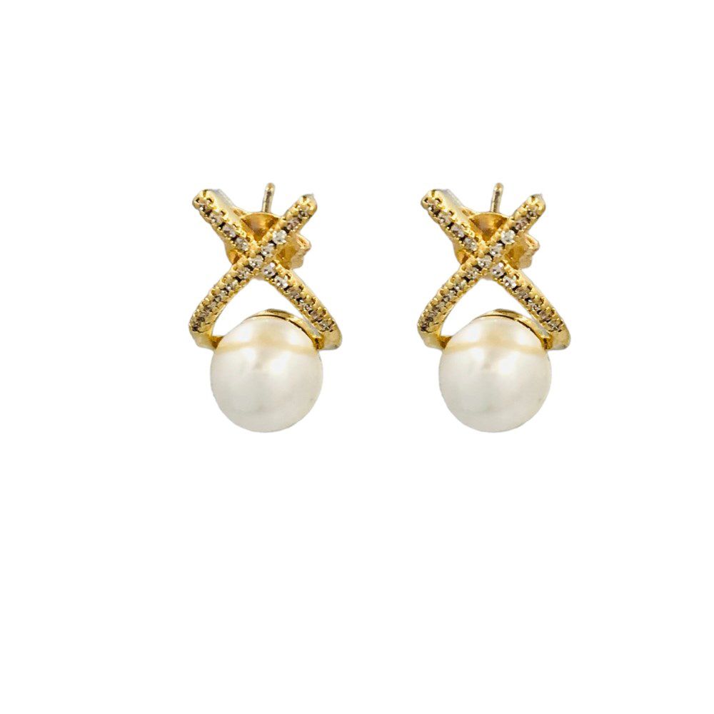 BRINCO FOLHEADO 18K X EM ZIRCONIA C/ PEROLA