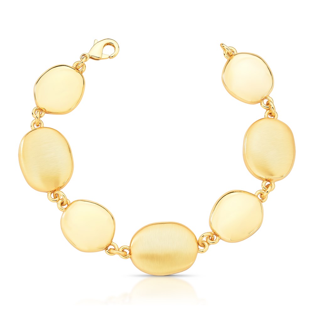 PULSEIRA MALEAVEL LISO INTERCALADO OVAL/ORGANICO 16MM BAN. DOURADO ACETINADO /TAM. 20